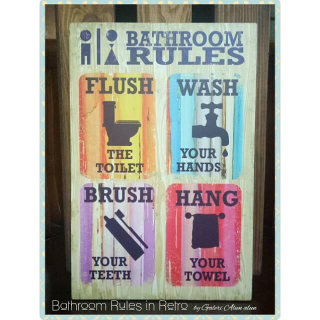 Sale Hiasan Dinding Wall Decor Bathroom Rules In Retro Print On
