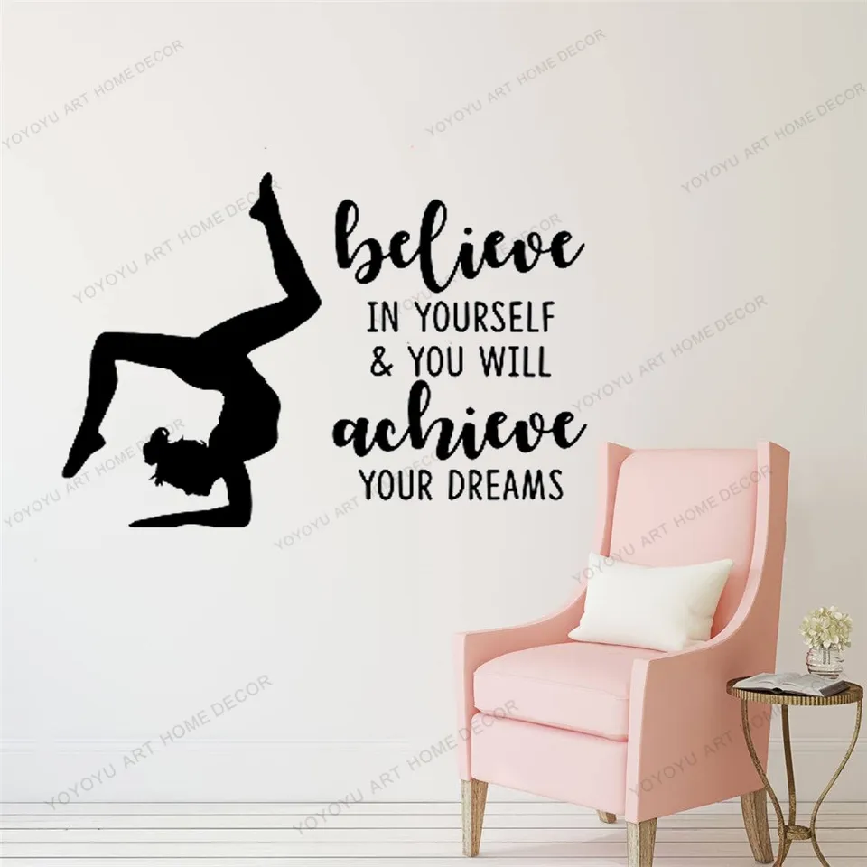Gymnastics Believe Achieve Quote Wall Decal Sticker Bedroom Art