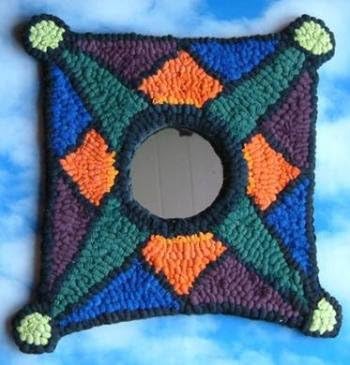 Hand Hooked Hand Made Rag Rug Mirror Wall Hanging Amazon Co Uk