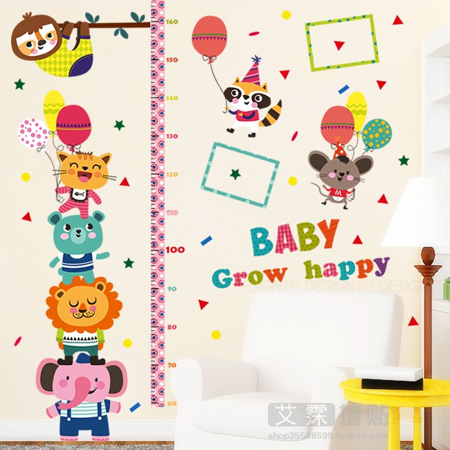 Removable Wall Stickers Happy Zoo Height Stickers Children Room