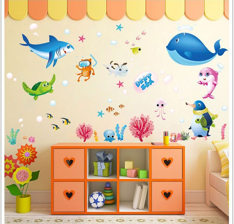 New Cartoon Underwater World Wall Stickers For Kids Baby Room