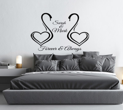 Personalised Love Hearts Swan Wall Sticker Romantic Bedroom Wall