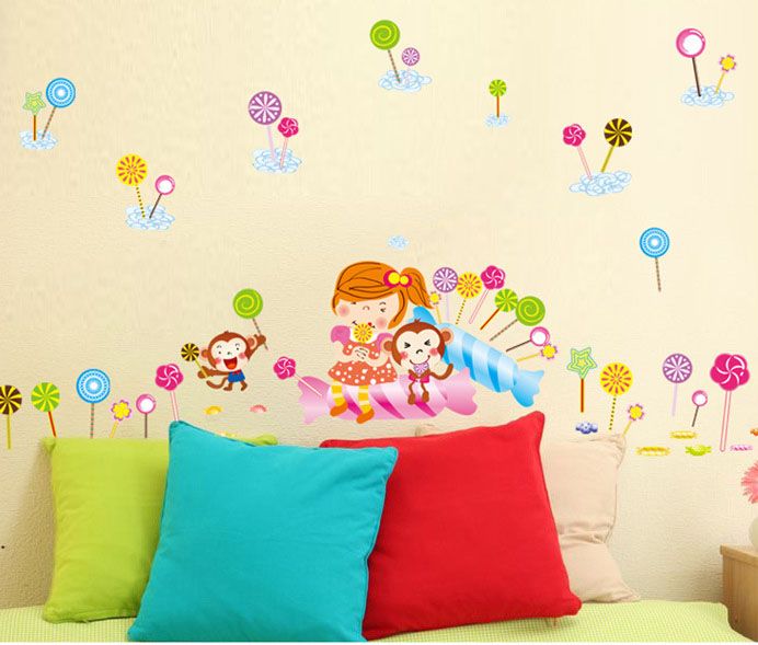 Cartoon Monkey Little Girl Lollipop Wall Art Mural Decor Romantic
