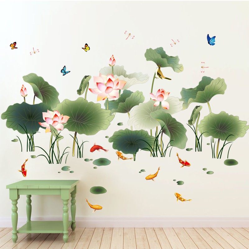 Chinese Style Lotus Wall Sticker Stickers Warm Living Room Tv