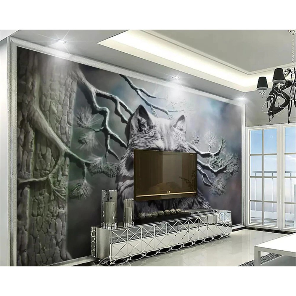 Beibehang Custom Wallpaper 3d Photo Mural Embossed Forest Wolf