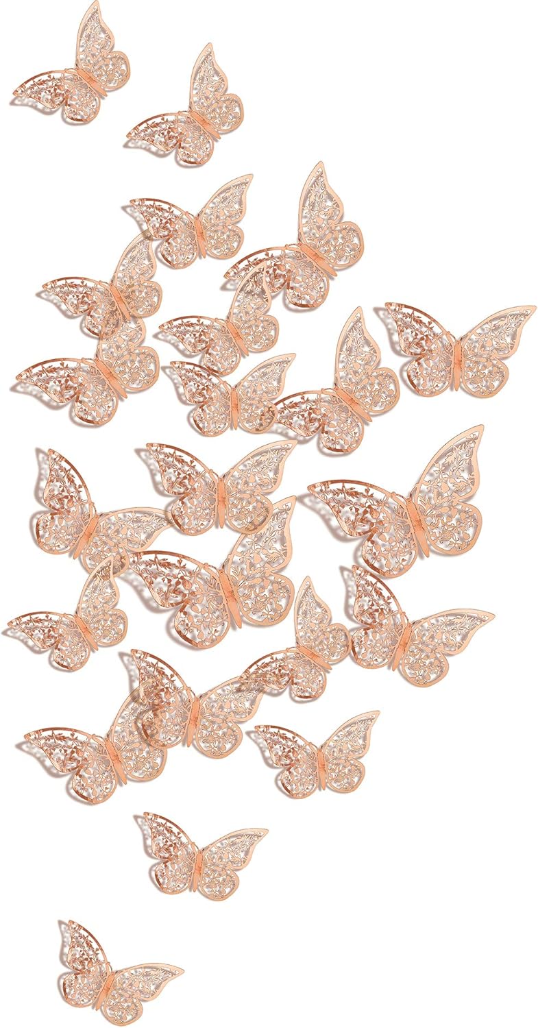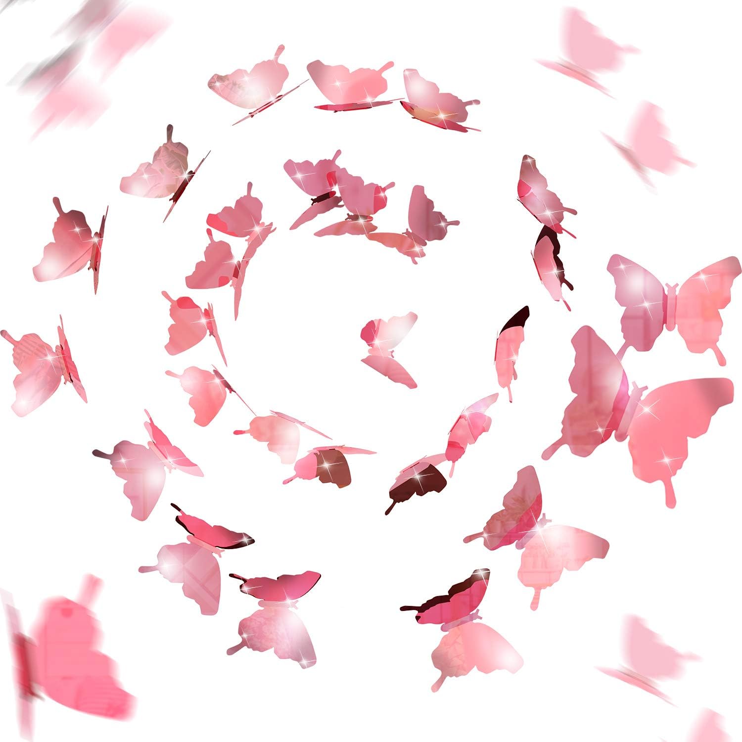 Amazon Com Bbto 36 Pieces Diy Mirror Butterfly Combination 3d Mirror Wall Stickers Home Decoration Rose Gold Arts Crafts Sewing
