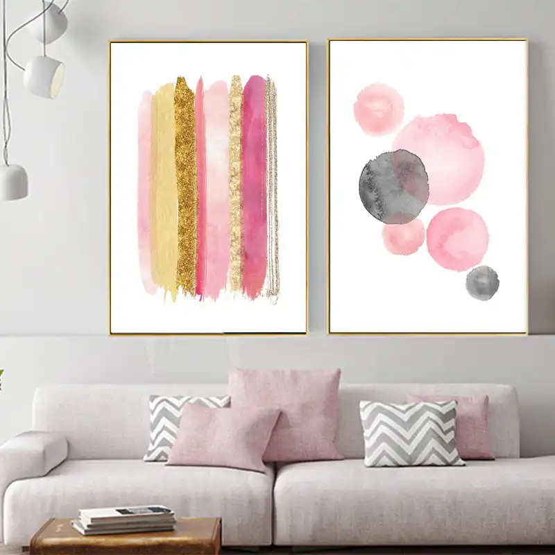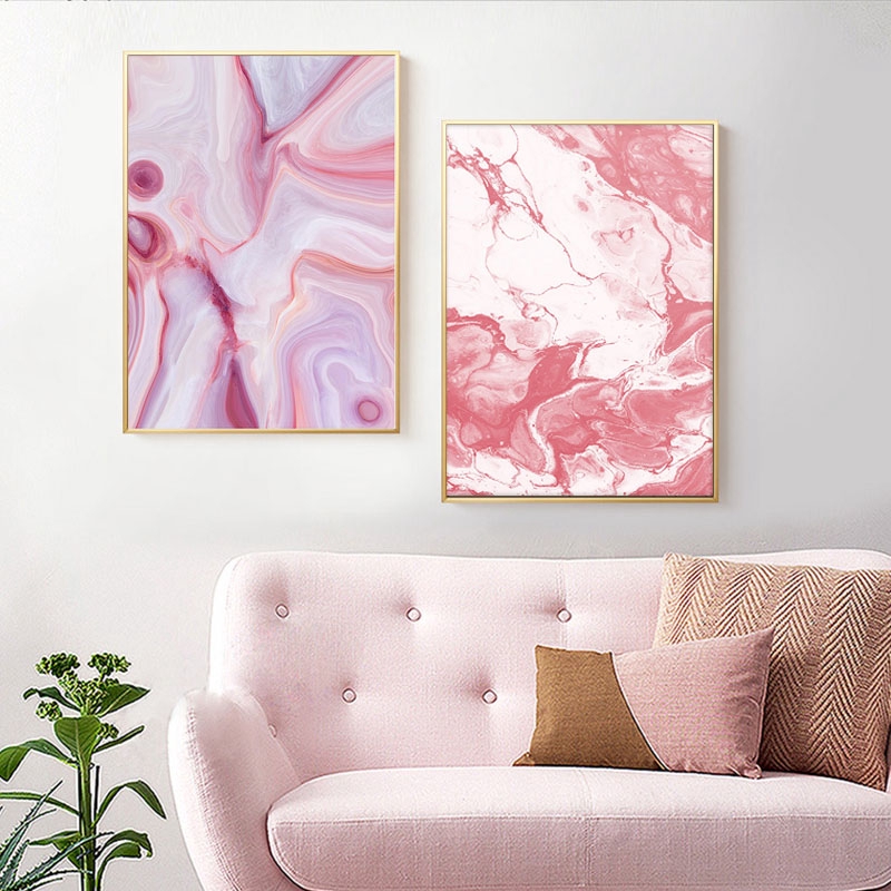 Pink Rose Gold Wall Art Abstract Glitter Canvas Painting