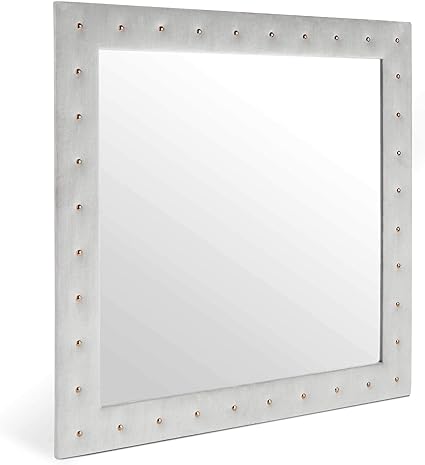 Beautify Large Wall Mirror Grey Velvet 80 X 80cm Square Soft