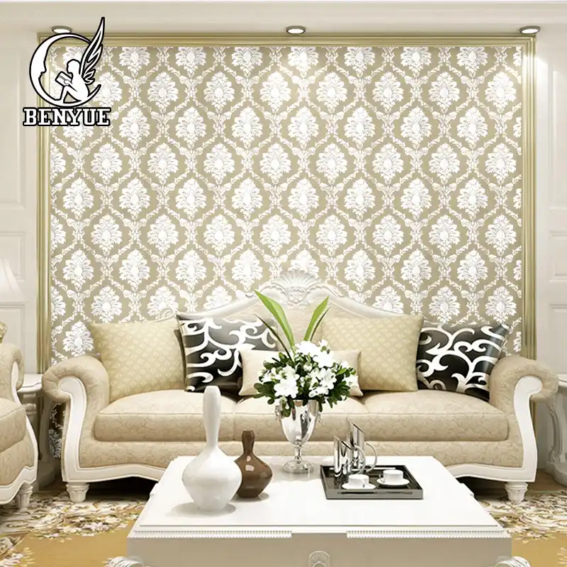 Non Woven Pvc Coated Royal Pattern Living Room 3d Wallpaper Size