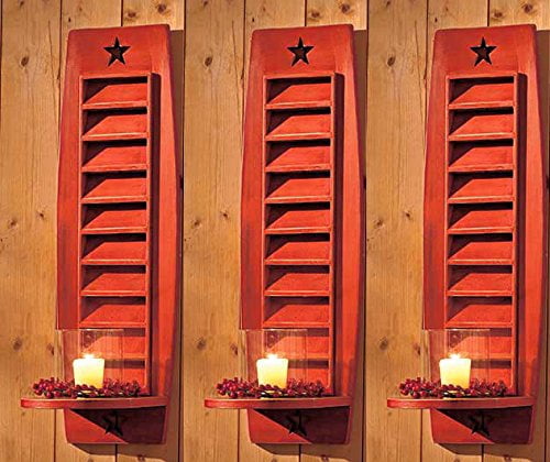 Rustic Farmhouse Star Wall Sconce Crackle Black Red