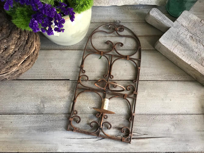 Rustic French Iron Wall Planter Candle Holder Wall Sconce