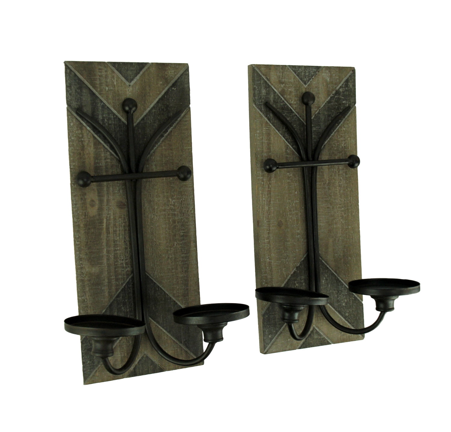 Rustic Wood And Metal Double Candle Wall Sconce Set Of 2 Walmart Canada