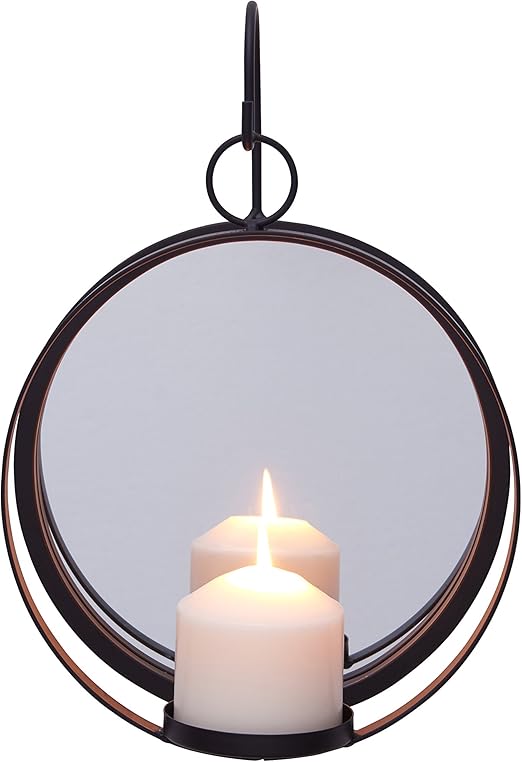 Amazon Com Danya B Round Wrought Iron Pillar Candle Sconce With Mirror A Decorative Rustic Metal Hanging Wall