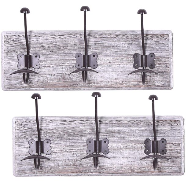 Rustic Wall Mounted Coat Rack With 3 Sturdy Hooks Set Of 2