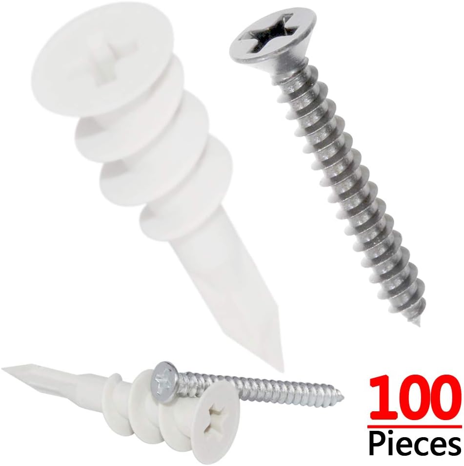 Hilitchi 122 Piece Plastic Self Drilling Drywall Hollow Wall