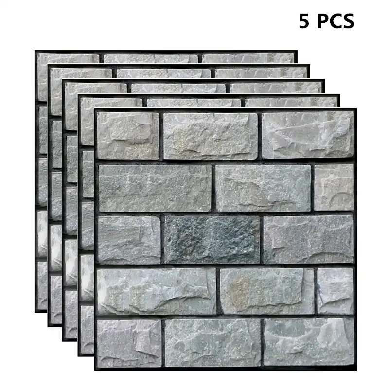 5pcs 3d Brick Self Adhesive Wall Sticker Pvc Waterproof Diy