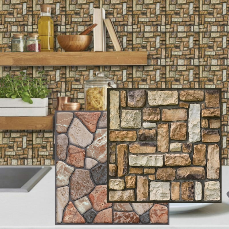 3d Tile Wall Decals Peel And Stick Self Adhesive Brown Grey Stone