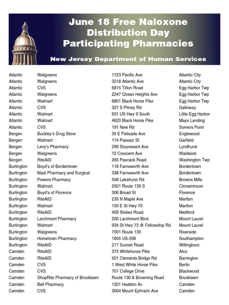 Pharmacies Offer State Funded Naloxone June 18 Jersey Shore Online