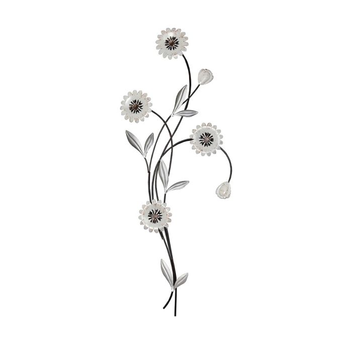 White And Silver Metal 3 Flower Wall Art 70x57 Maisons Du Monde