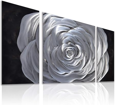 Metal Wall Art With Pure Silver Rose Flower Design Unique Metal
