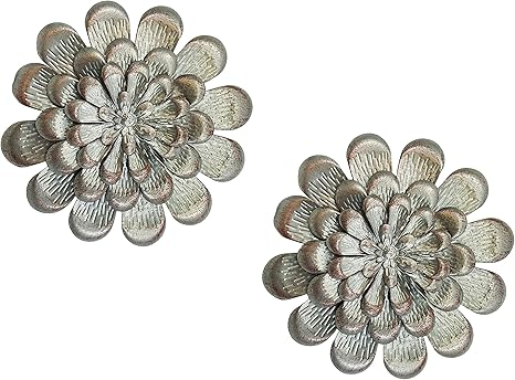 Amazon Com Silver Metal Flower Wall Decorations Set Of 2 With