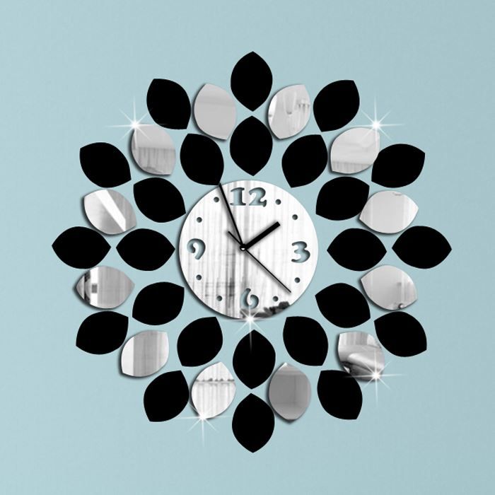 Big Leaf Black And Silver Wall Clock Modern Design Luxury Mirror