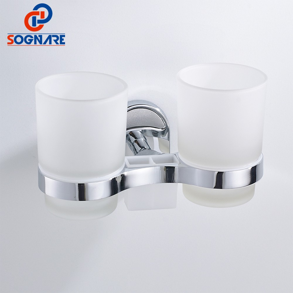 Sognare Silver Zinc Alloy Toothbrush Tooth Cup Holder Double Cup