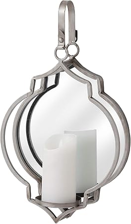 Large Mirrored Silver Candle Holder Wall Sconce Metal Glass Hanger