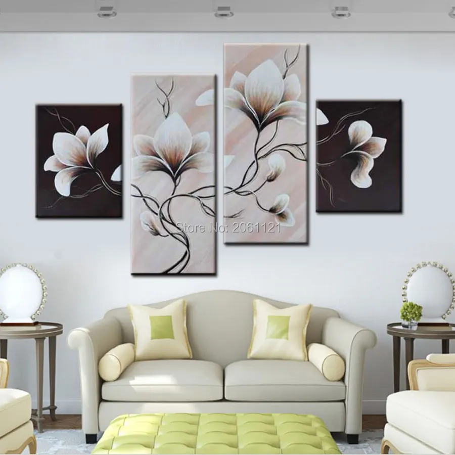 4 Panels Group Oil Painting On Canvas Flowers Black White Style Wall Paintings Easy Simple Home Decoration Flower Art Flower 3d Nail Art Flower Art Paintingart Nurse Aliexpress