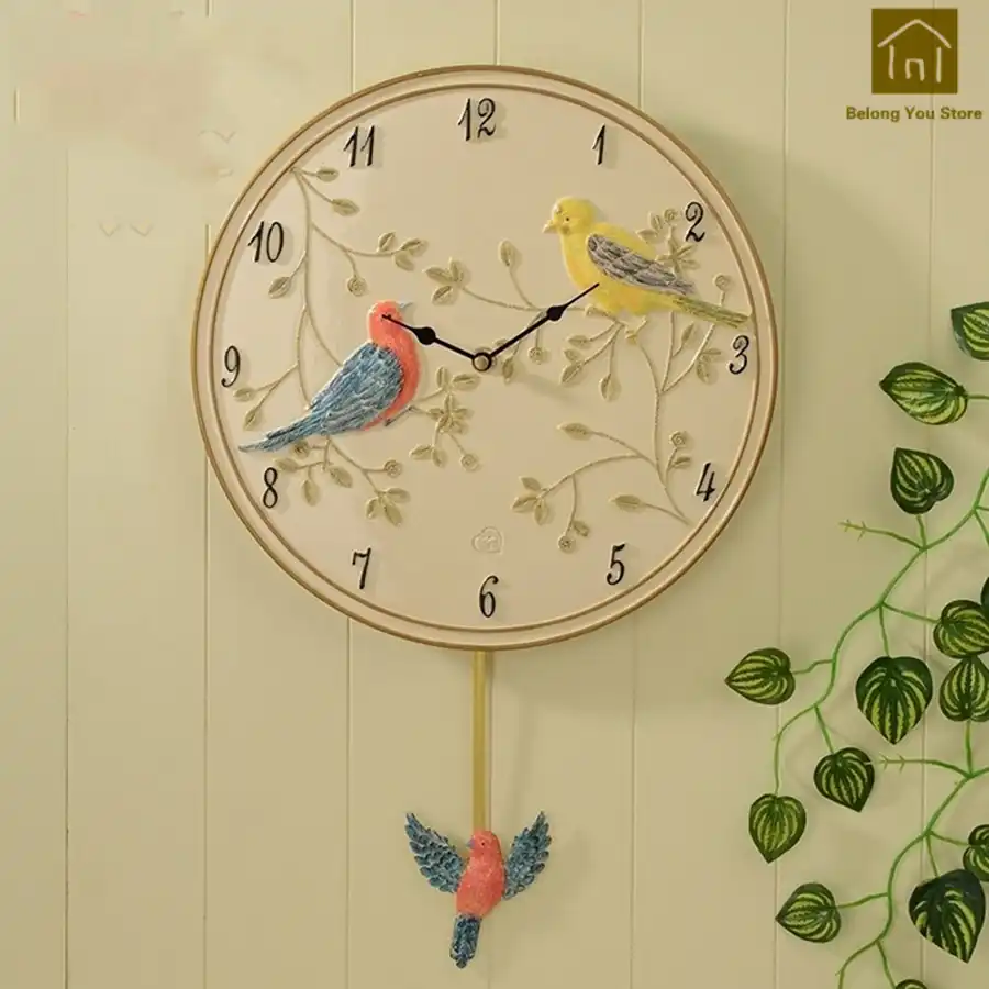 Safe Resin Silent Birds Wall Clock Art Creative Simple Wall Watch