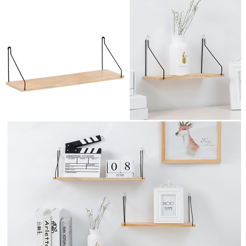 Bedroom Wall Shelves Solid Wood Shelves Iron Wall Rack Nordic