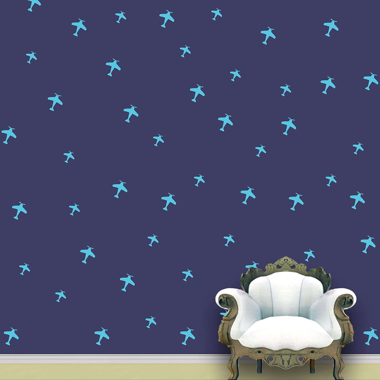 Buy Aeroplanes Pattern Sky Blue Colour Set Of 52 Wall Stickers