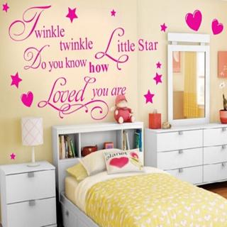 Cute Pink Nordic Nursery Wall Art Twinkle Little Star Girls Room