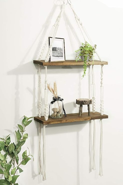 Timeyard Macrame Hanging Shelves Rustic Wood Wall Shelves With