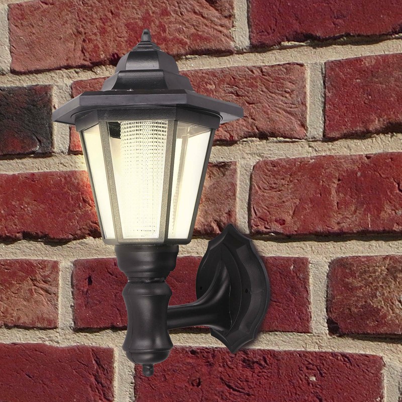 Solar Powered Wall Lantern Led Lights Black Outdoor Retro Garden
