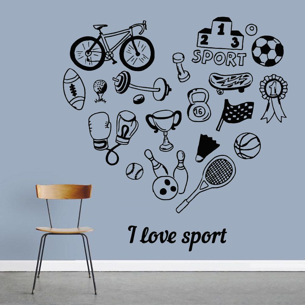 I Love Sport Wall Sticker Boys Room Bowling Tennis Bicycle Vinyl