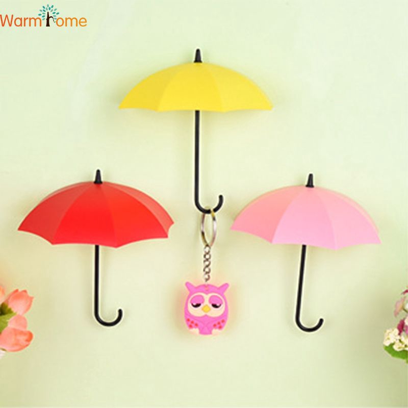 Unique Sticky Wall Hooks Umbrella Plastic 3 Pcs Decorative Key Hanger