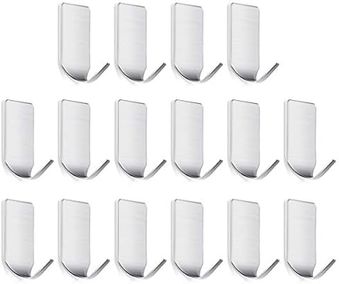 16 Pcs Adhesive Hooks Stainless Steel Waterproof Wall Clips