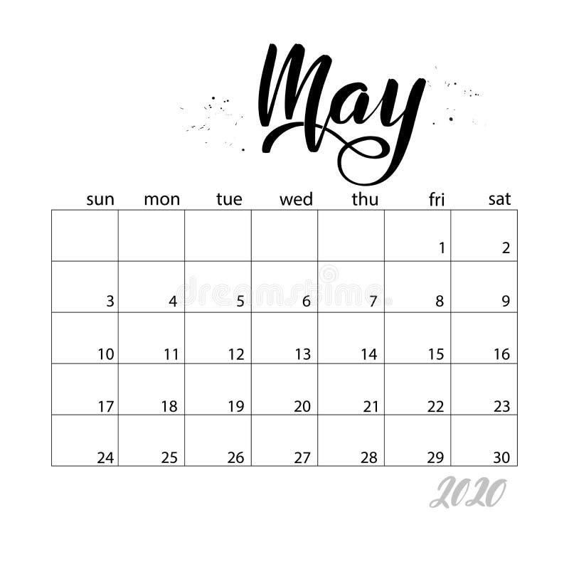May Monthly Calendar For 2020 Year Stock Vector Illustration Of