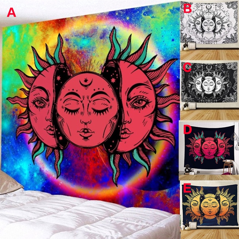 Rg Rug Psychedelic Sun Moon Wall Tapestry Bedroom Shopee Indonesia