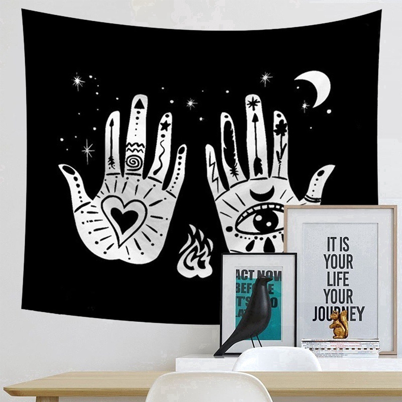 Sun Moon Wall Hanging Psychedelic Tapestry Black And White