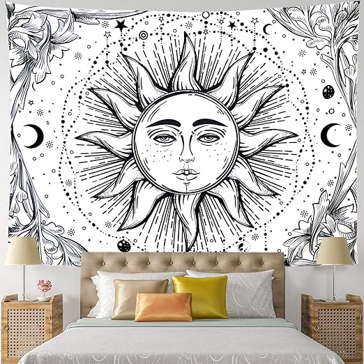 Large Sun Moon Wall Tapestry Black And White Sun Tapestries Etsy