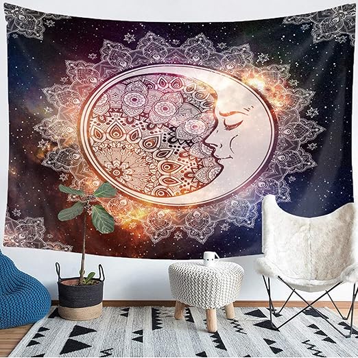 Amazon Com Sylfairy Mandala Tapestry Hippie Bohemian Moon Psychedelic Tapestry Wall Hanging Galaxy Tapestries Indian Dorm Decor Living Room Bedroom Home Decor 59 X