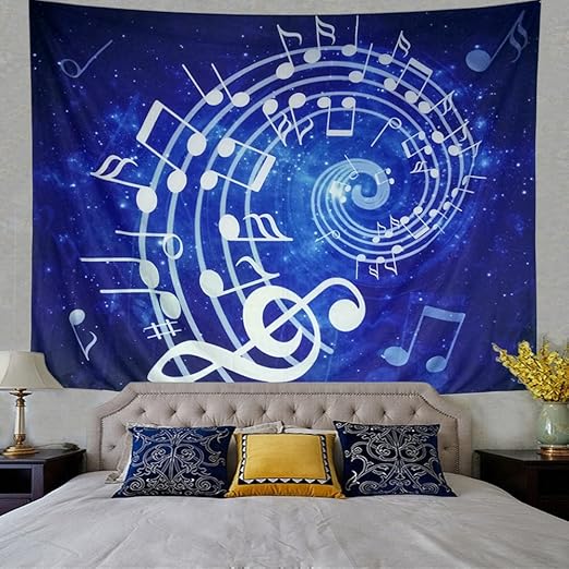 Amazon Com Leofanger Music Tapestry Wall Hanging Blue Music Note