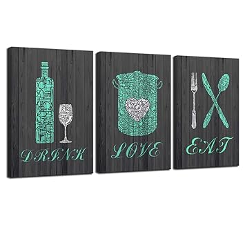 Levvarts 3 Piece Kitchen Wall Art Teal Fork Knife Spoon Wine