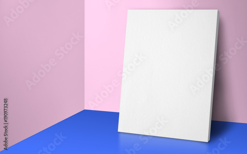 Blank Poster At Corner Pastel Pink And Blue Studio Room With Wall