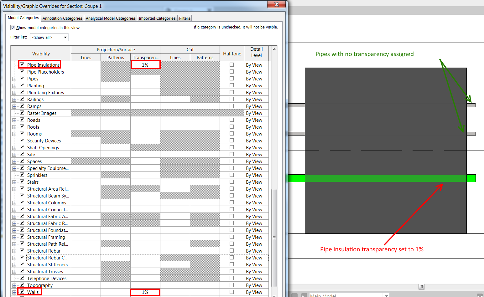 Transparency Assigned To Pipe Leads Pipes To Looks Like Being In Front Of Transparent Walls In Revit Revit Products 2019 Autodesk Knowledge Network