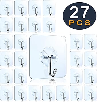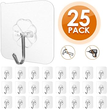 Amazon Com Strong Adhesive Hooks 33lb 15kg Max Transparent Heavy Duty Wall Stick Hooks For Bathroom And Kitchen Hanging Hooks 25 Packs Home Improvement