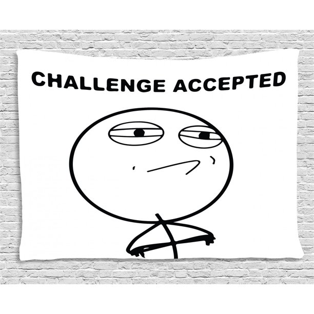 Humor Decor Tapestry Challenge Accepted Guy Meme Caricature Man