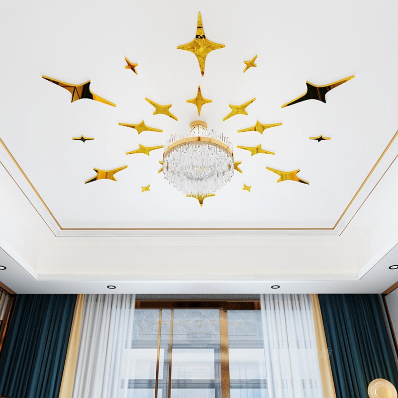 Ready Stock Creative Star Stickers Mirror 3d Solid Wall Stickers